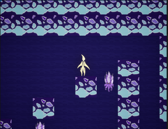 Dans ce prototype, vous incarnez un petit personnage piégé dans une grotte cristalline.